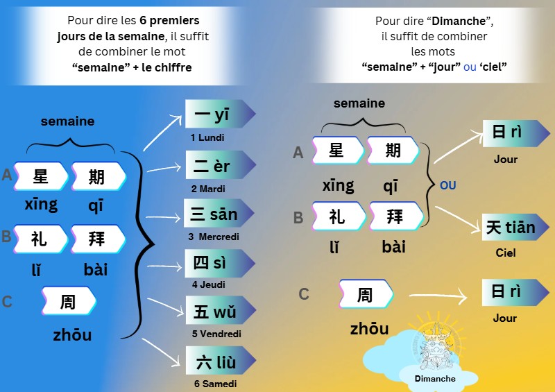 Schéma 1 : 学 xué + nouveau caractère = nouveau mot